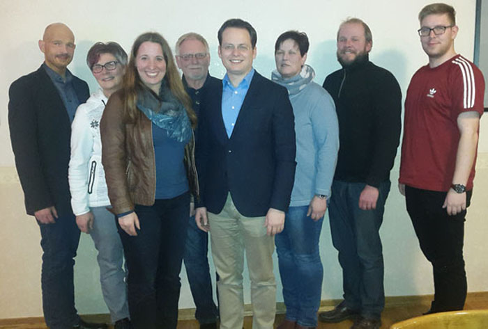Gruppenbild nach der Dikussion (von links): Ulrich Fiedler (stellvertr. Vorsitzender der SPD Bad Arolsen), Rositta Krämer, MdL Dr. Daniela Sommer, Friedhelm Schneider (beide SPD- Allendorf Eder), Tobias Eckert, Petra Henkel (SPD-Ortsvereinsvorsitzende Battenberg), Unterbezirksvorsitzender und Fraktionsvorsitzender FKB Dr. Hendrik Sommer und Christopher Ostrowski (Vorstandsmitglied SPD-Allendorf-Eder). Tobias Eckert referierte über Infrastruktur und Mobilität im ländlichen Raum