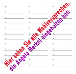 Am 23. Juni wollen CDU und CSU ihr Wahlprogramm beschließen. Nicht auf Parteitagen, sondern das machen die Vorstände unter sich aus. Weil ihnen nicht viel einfällt, hat die Kanzlerin selbst nachgedacht – und einige Ideen entwickelt, was im Wahlkampf gut ankommen könnte. Das kostet zwar viel Geld, ist aber egal, denn es kommt eh nicht.