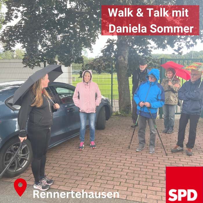 Am Montag dieser Woche machte die heimische Landtagsabgeordnete Dr. Daniela Sommer auf ihrer Walk & Talk Tour 2023 Station in Rennertehausen. Trotz des nahezu herbstlichen Wetters hatten sich dazu zahlreiche Interessierte eingefunden.